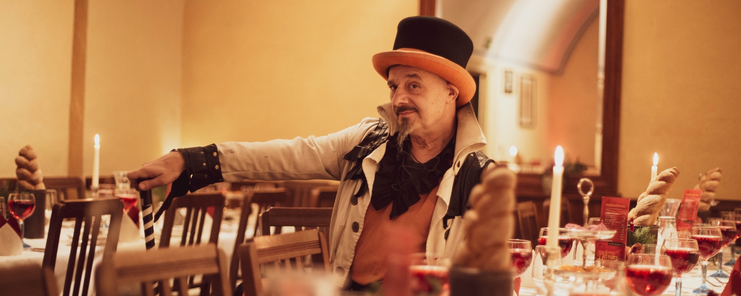 Der schaurige Kerkermeister Beinhardt freut sich Hände reibend und schelmig grinsend darauf, seine Gäste am Fuß der Festung zu begrüßen. Er ist ein furchtbar finsterer Geselle, der Sie mit Laterne und Eisenkette bewaffnet auf die Festung führt. Eine Begrüßung der extraschaurigen Art. Sie mögen es lieber etwas eleganter? Dann begrüßen Sie Ihre Gäste doch bei einem Glas prickelnden Sekt, einem köstlichen Becher vom Festungspunsch oder einer Bowle, kredenzt durch unsere kostümierten Ordonanzen und Mägde. Stoßen Sie beim Blick auf das imposante Elbtal gemeinsam auf einen unvergesslichen Abend an.